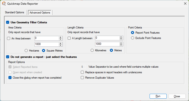| Close Dialog When Report Has Completed | Uncheck if you want to run multiple reports consecutively without reopening the dialog. |