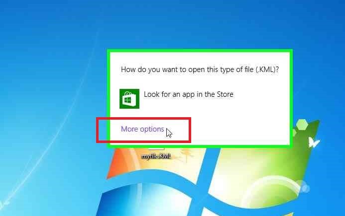 - You will then be asked “How do you want to open this type of file (KML)?”. Click More options, at the bottom.